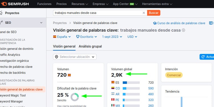 Una vez que hayas elegido tu palabra clave, es hora de incorporarla de manera inteligente en tu contenido. En mi caso uso Semrush para ver la competencia de una palabra clave, creo que es la más fiable actualmente, y con una versión de prueba te deja mirar 10 al día gratis, ojear las similares y hasta filtrar las que tengan una dificultad más baja.